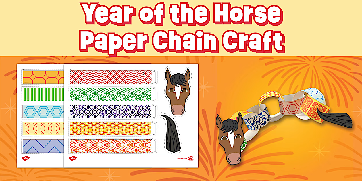 Craft idea adapted from Twinkl – Year of the Horse Paper Chain Craft. (Twinkl resource)