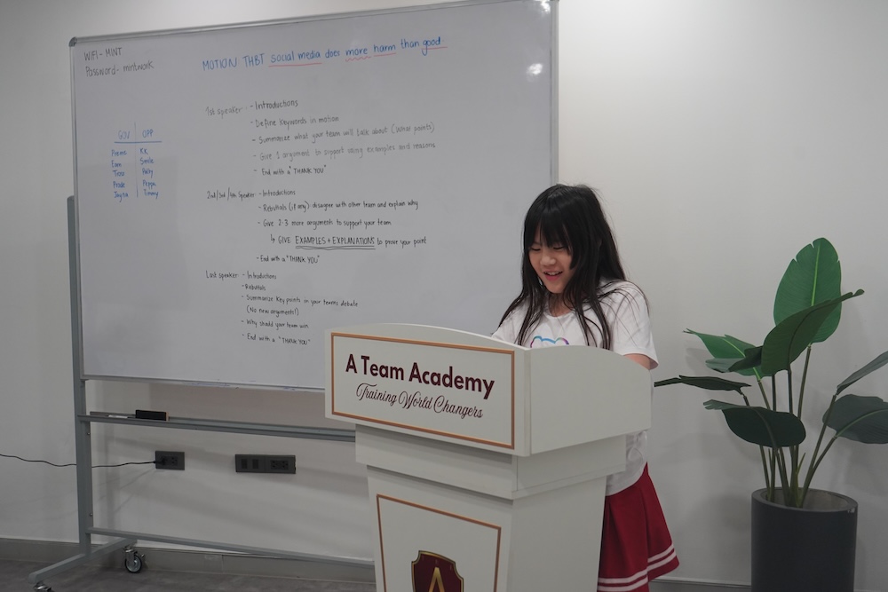 A Team Academy is a leading speech and debate academy based in Bangkok, founded in 2020. We offer programs in Speech & Debate, Public Speaking, Writing, World Scholar’s Cup training, and the Future Founder Program.
