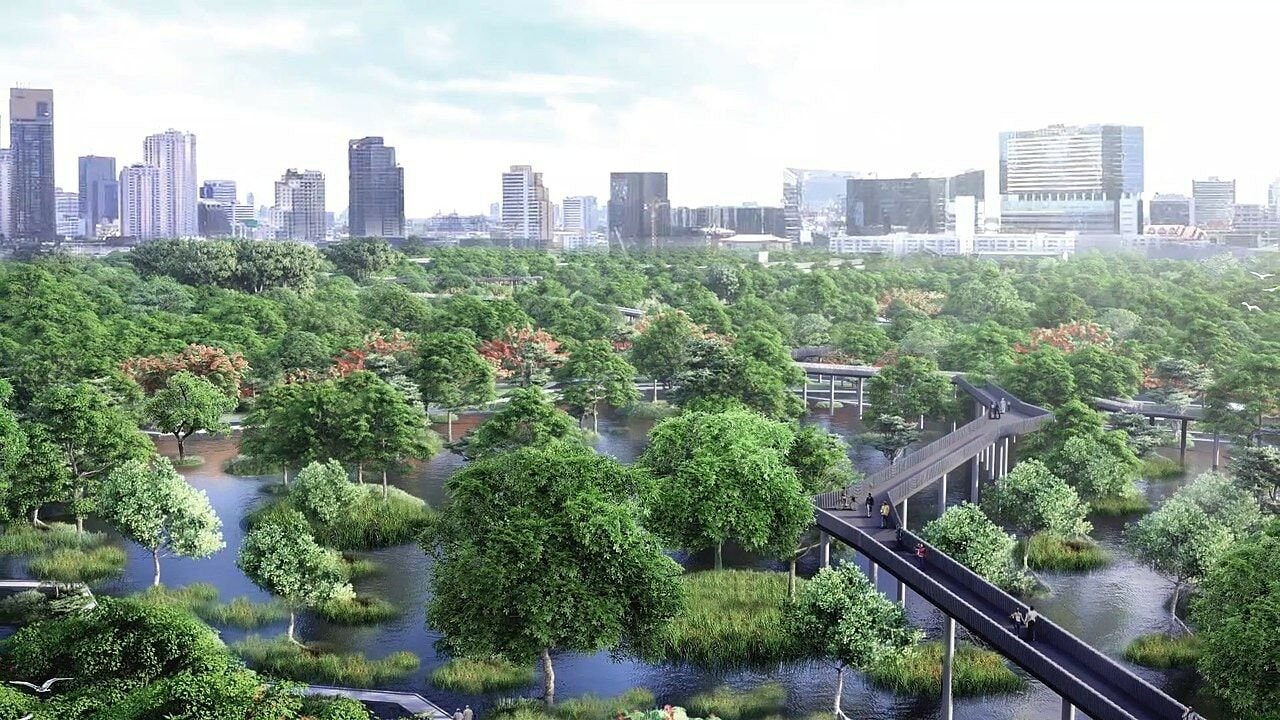 Bangkok’s future is green. The “Benjakitti Park” in the city’s Asoke area is expanding and becoming a “forest park.” The new addition features a 1.5 kilometre elevated walkway surrounded by tropical trees and a bicycle track that connects to Lumpini Park. Along with a variety of plants, the park will also have canals and ponds. The project